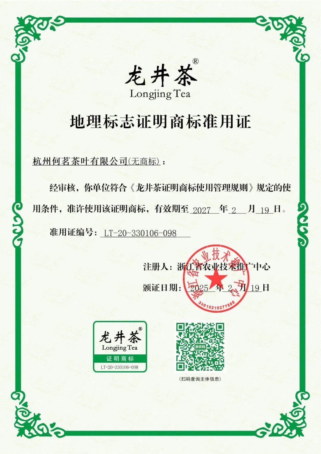 我们这次为大家溯源的龙井茶,包装都带有政府授权“龙井茶”地理标志证明,扫码溯源可查询真伪,对于茶友们来说,这可是一大安心保障!
