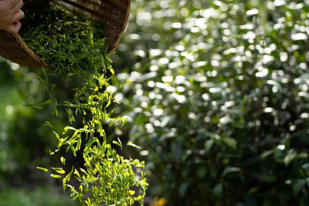 茶农立身于梯田,竹篓中只纳芽叶匀齐、无杂无瑕的“鲜灵”,一日采撷不过半篓。