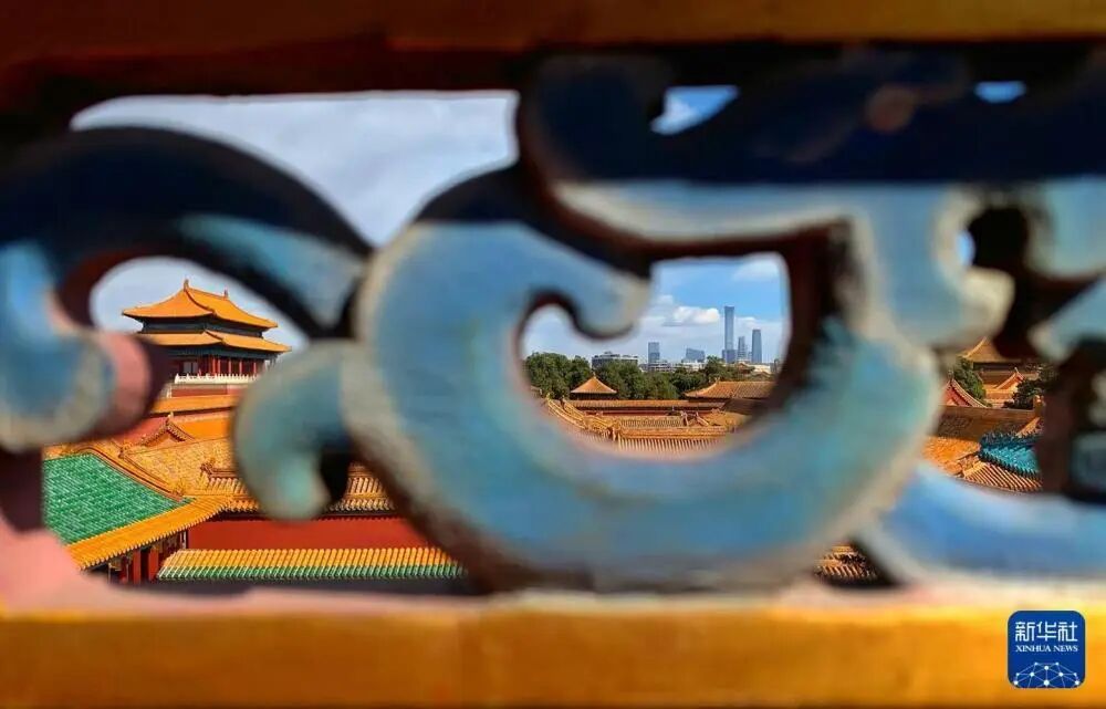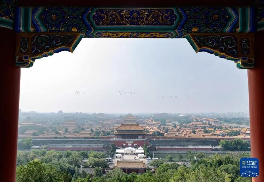 2025年/纪念中国人民抗日战争暨世界反法西斯战争胜利80周年大会在北京隆重举行,空中护旗梯队与故宫“同框”/摄影:王婧嫱