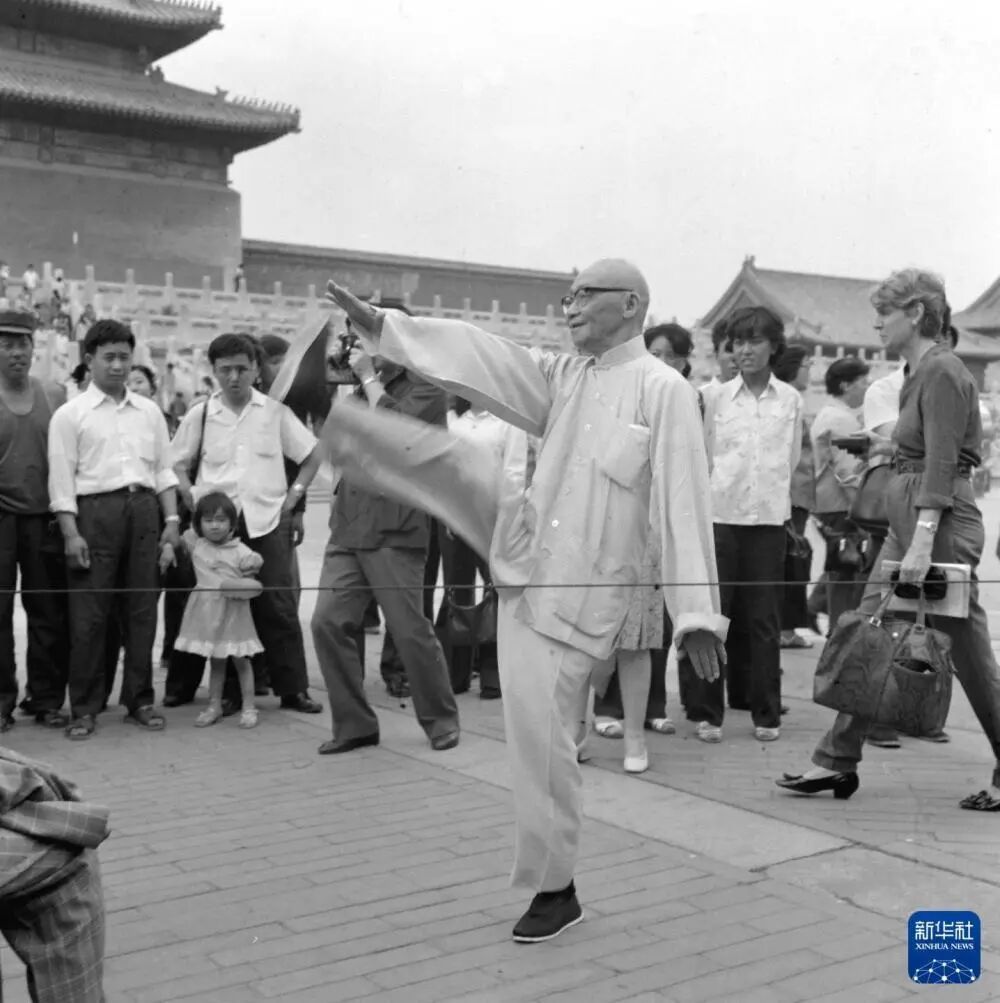 1983年/香港81岁老中医朱鹤皋为游客表演健身功/摄影:黄景达