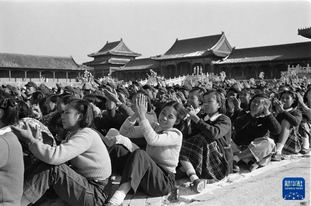 1952年/首都各界群众在故宫太和殿广场庆祝亚洲及太平洋区域和平会议闭幕/摄影:方弘
