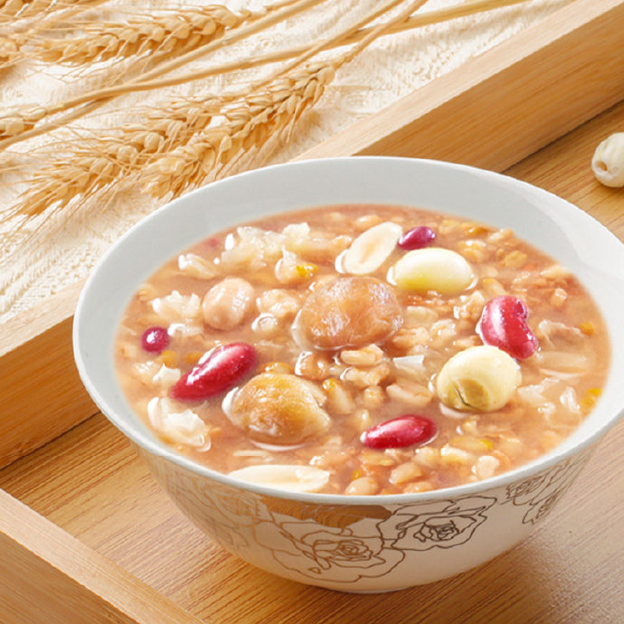 龙眼肉6克、莲子10克、小米60克、花生仁20克,熬粥早晚常食之。