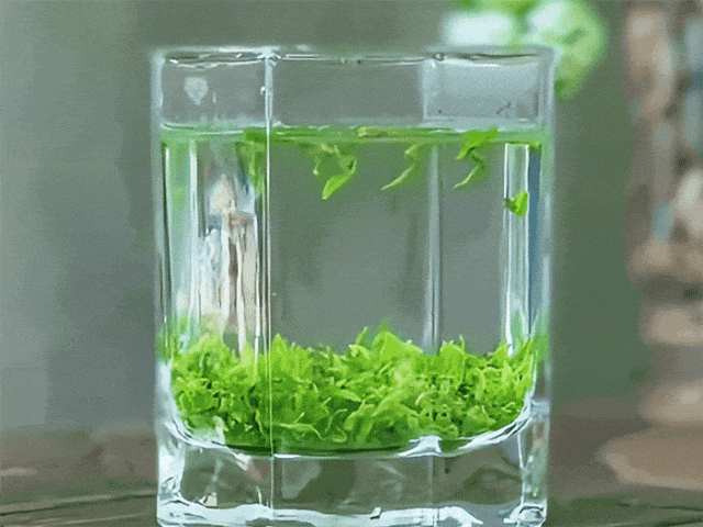 以80-85℃的纯净水冲泡为宜,茶叶入水,即如“飞雪沉江”,白毫舞动,缓缓下沉。片刻后,汤色碧绿清澈,宛若初春的湖面,明亮动人。