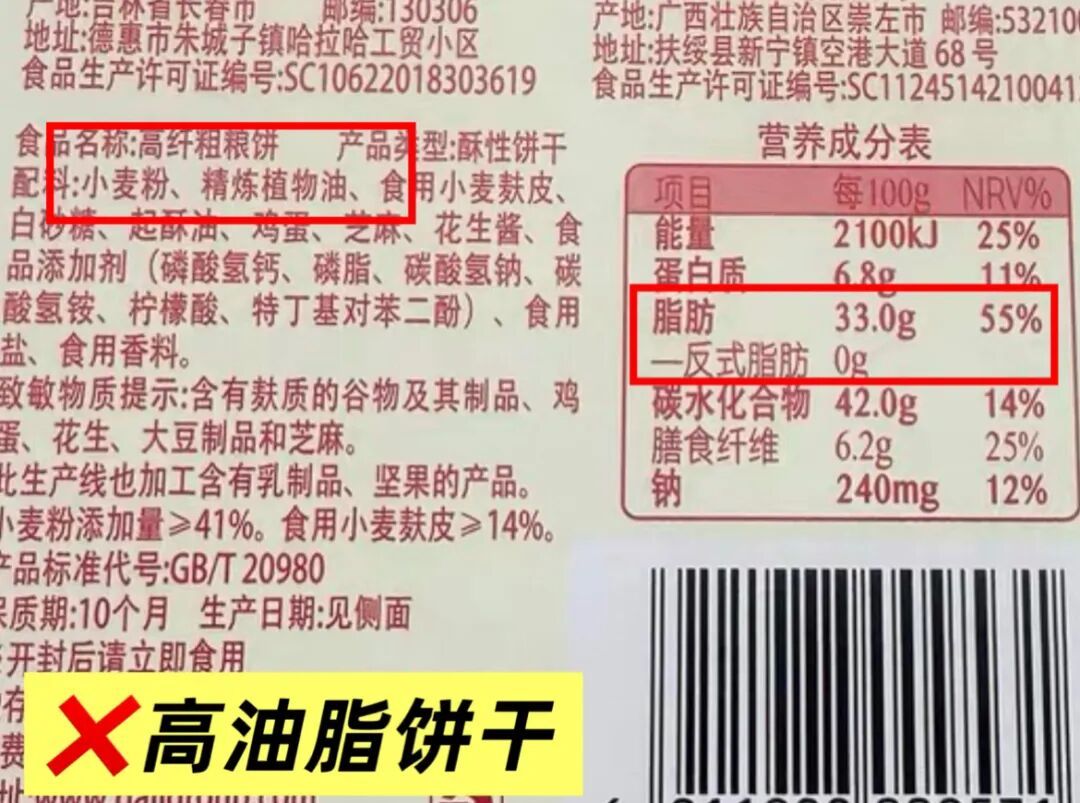 有些姐妹会把粗粮饼干当成代餐,或低热量零食。但实际情况是,很多粗粮饼干的脂肪含量并不低,甚至高得吓人。