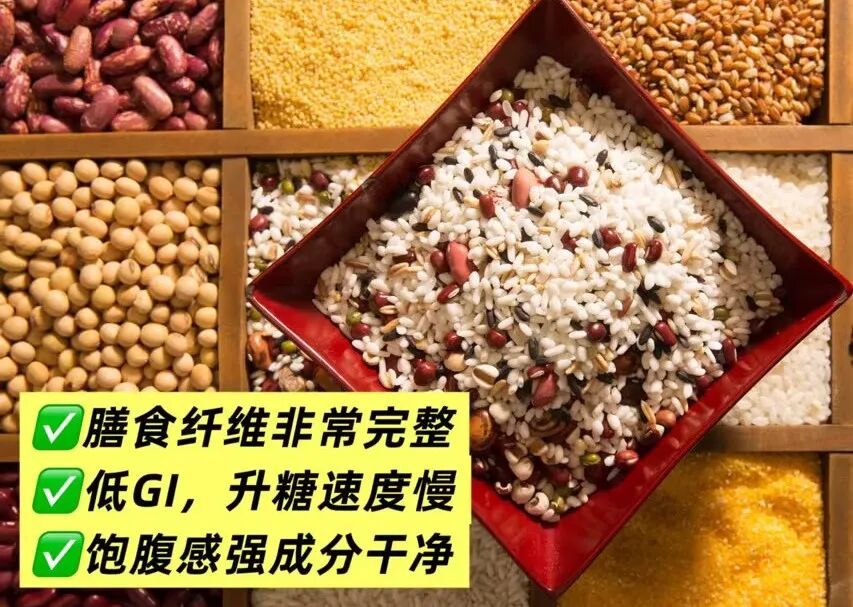 ✅避坑指南:推荐直接吃整粒的杂粮饭,比如糙米、燕麦、杂豆等,如果图个方便,选择配料里干干净净、只有单一谷物,且没有添加糖的。